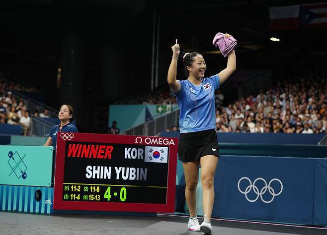 이번 승리로 신유빈은 파리 올림픽 여자 탁구 단식 4강에 진출하는 쾌거를 이뤘습니다. 경기 후 신유빈은 감격의 눈물을 흘리며 승리의 기쁨을 만끽했습니다.